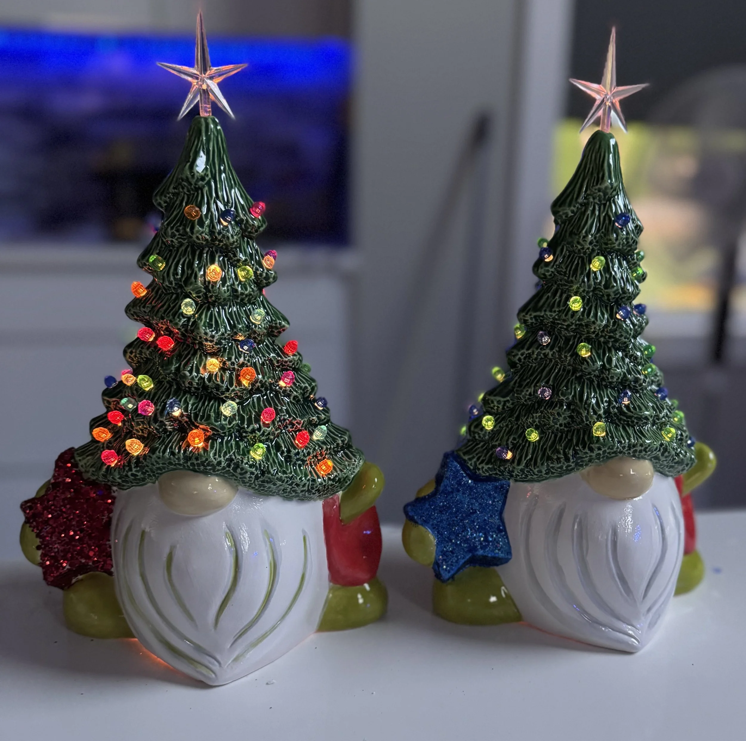 Celebrate the holidays with this charming vintage ceramic Christmas tree. These are delightful pieces are a nostalgic nod to Christmas past, featuring a beautifully hand, the tree is adorned with colorful, removable plastic bulbs that light up, creating a warm and festive ambiance. The tree also includes a star topper that completes its classic look.